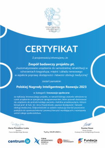 Uroczyste wręczenie nagrody odbędzie się 20 października podczas Gali 8. Edycji Nagród Forum Inteligentnego Rozwoju, która będzie gościć innowatorów, inwestorów i przedstawicieli administracji publicznej, a także reprezentantów mediów. Będzie to wspaniała okazja do jeszcze szerszego popularyzowania realizowanego projektu oraz jego wyników.